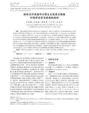 摘要 为探究稻虾共作系统中不同秸秆还田与投食处理下水稻生长发育特征、 光合变化规律及氮素养分吸