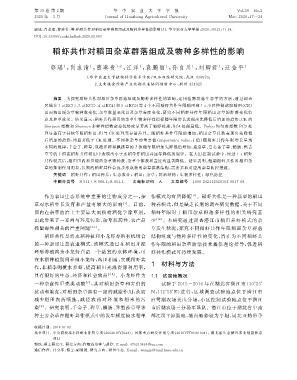 关键词 稻虾共作;稻田种养;生态农业;稻田;杂草;群落结构;生物多样性;绿色防控