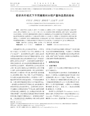 水稻是世界上最主要的粮食作物之一, 世界上 共作模式下选择合适的播期, 获得高产与优质的稻