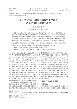 关键词 茶产业;产业经济;CiteSpace;知识图谱;乡村振兴;茶文化