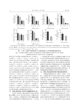 酸合成酶(GOGAT)的活性显著高于氮低效品种 9.3% 和 28.7%;−N处理下,氮高效品种(5#)氮累积