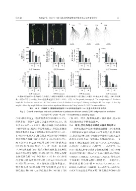 量。不同小写字母表示通过 Tukey 检验具有显著差异(P< 0.05)。下同。A:The growth phenotype;B:The root phenotype;C:Total root