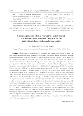 this region.Hydroponic culture was conducted to screen potassium utilization efficiency.The potassium effi
