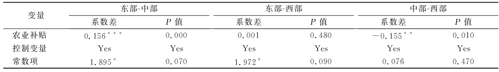 表7 农业补贴对农户家庭人均年可支配收入影响的区域差异检验