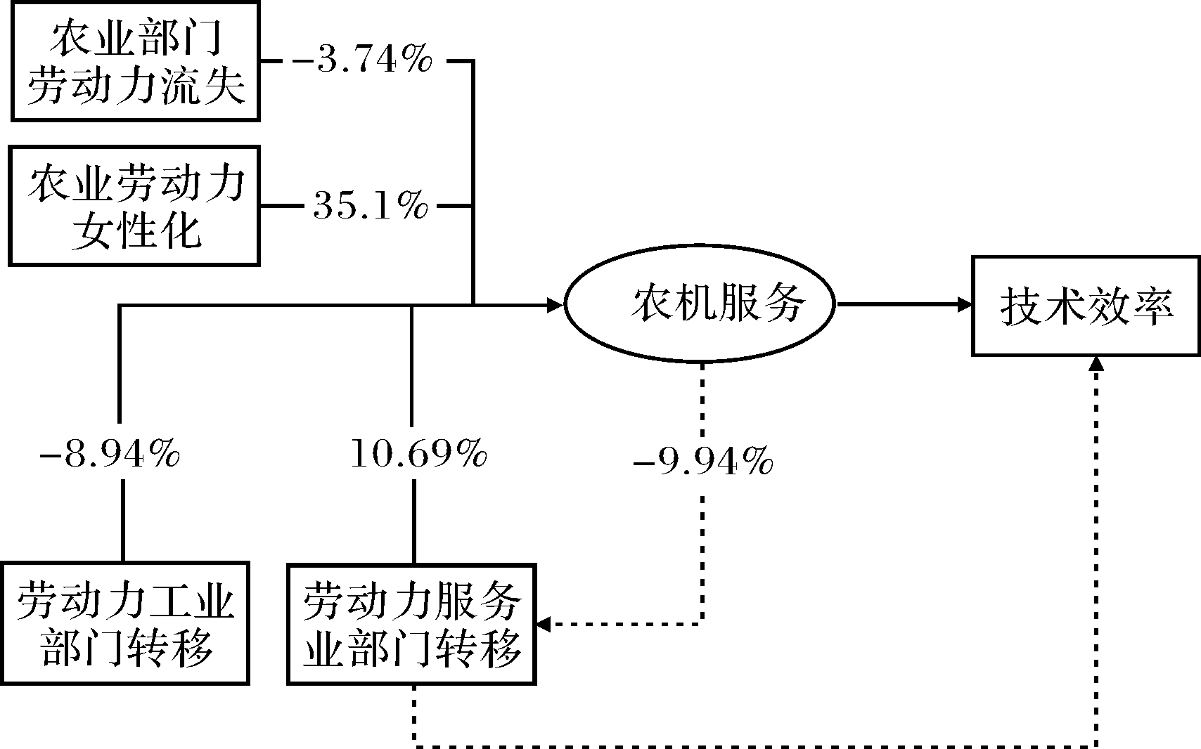 图2 劳动力结构变化、农机服务对粮食生产技术效率的中介效应