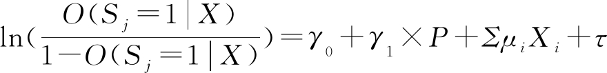 式(2)中,Sj是被解释变量,表示是否进行农地确权颁证、农地租赁契约正式化以及第三方是否参与农地流转,而O(Sj=1|X)是条件概率函数,表示控制其他变量时地权稳定性的概率。P是核心解释变量,表示政治联系,且γ1是其系数。Xi是控制变量,具体含义保持不变,μi是其系数。此外,γ0和τ分别表示截距项和随机误差项。