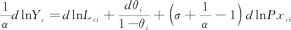 Acemoglu等提出封闭经济条件下技术进步影响经济的理论框架,即包括劳动力替代效应、生产率效应和产业结构效应的影响机制[11]。虽然该框架考察的是对就业的综合效益,但指明了技术进步影响经济发展的具体形式,对分析人工智能对农业生产率的影响具有重要参考价值。具体而言,该理论模型表述为: