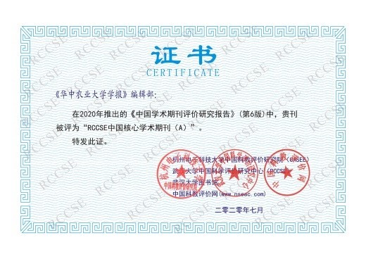 (通讯员:赵琳琳)据武汉大学中国科学评价研究中心近日发布的《中国学术期刊评价研究报告》(第六版)显示,《华中农业大学学报》在209种全国农学类科技期刊中排名第14,为RCCSE中国核心学术期刊A类。另据中国科协发布的农林领域我国高质量科技期刊分级目录中,《华中农业大学学报》位于T2等级(国际知名期刊)。