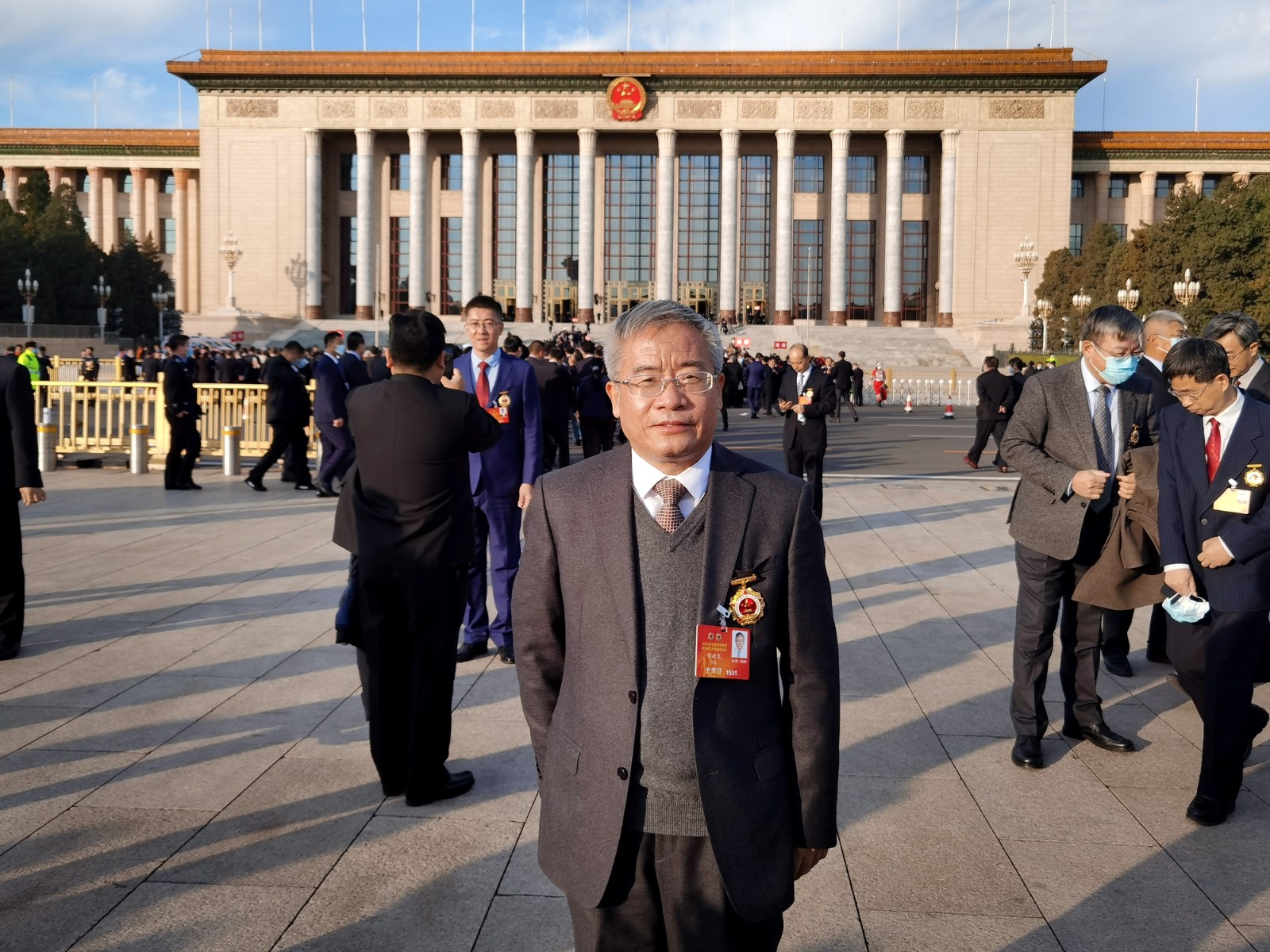 张献龙教授在人民大会堂前留影 照片来源于南湖新闻网,照片原作者为湖北卫视记者刘庆志摄